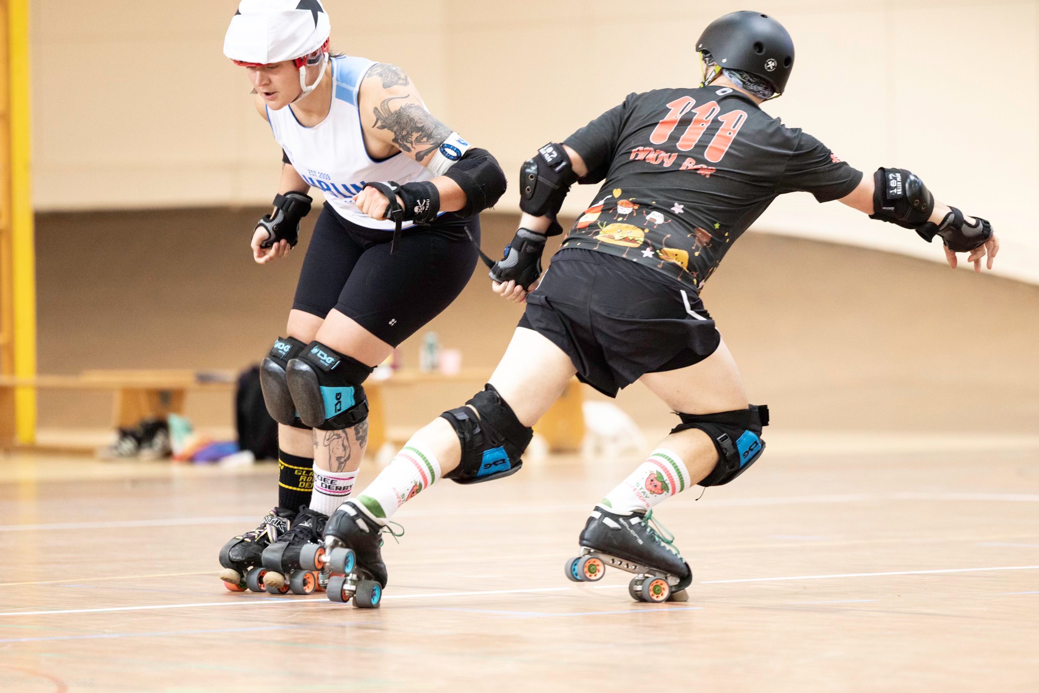 “The tryout weekend was hard and emotional. Honestly, the most challenging derby I’ve ever played. Everyone was so amazingly talented — I was just honored to be seen as on their level. No matter the outcome this has been one of the most exciting and formative derby experiences I’ve ever had and I’m so happy to have taken part.” – Princess TroubleGum von Bembel Town Roller Derby, Frankfurt